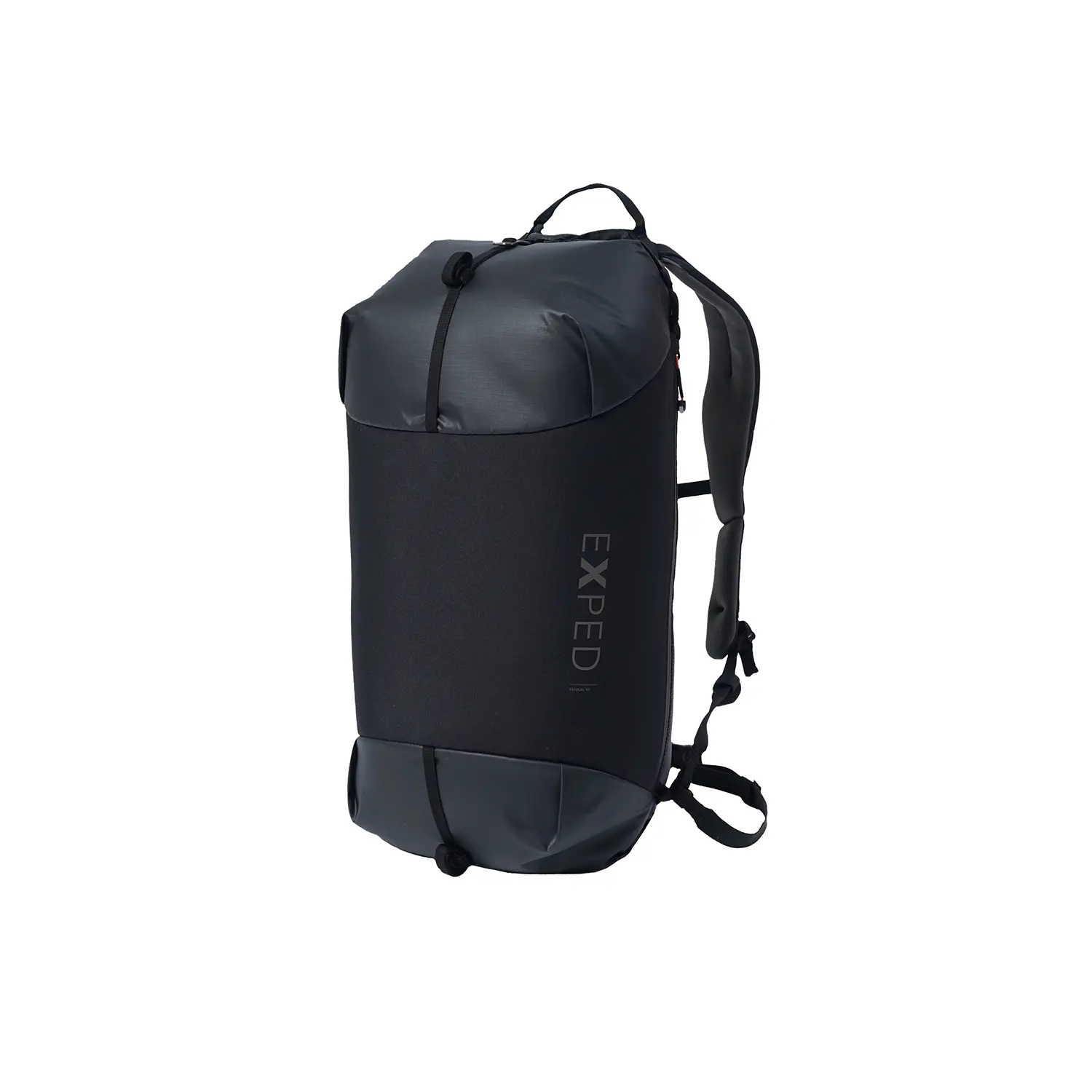 Exped's do-it-all Duffel | The Radical takes you anywhere you want - around the globe and around town. This technical backpack-duffel combination is a reduced, simple, light duffle bag with a sophisticated backpack carry option. The padded shoulder straps are easily stowed away or converted to a shoulder strap. The extra long, straight zippered access in the center allows for easy and convenient packing while the side zipper provides an additional quick access option for on the go. Great for the daily commute and for travel.