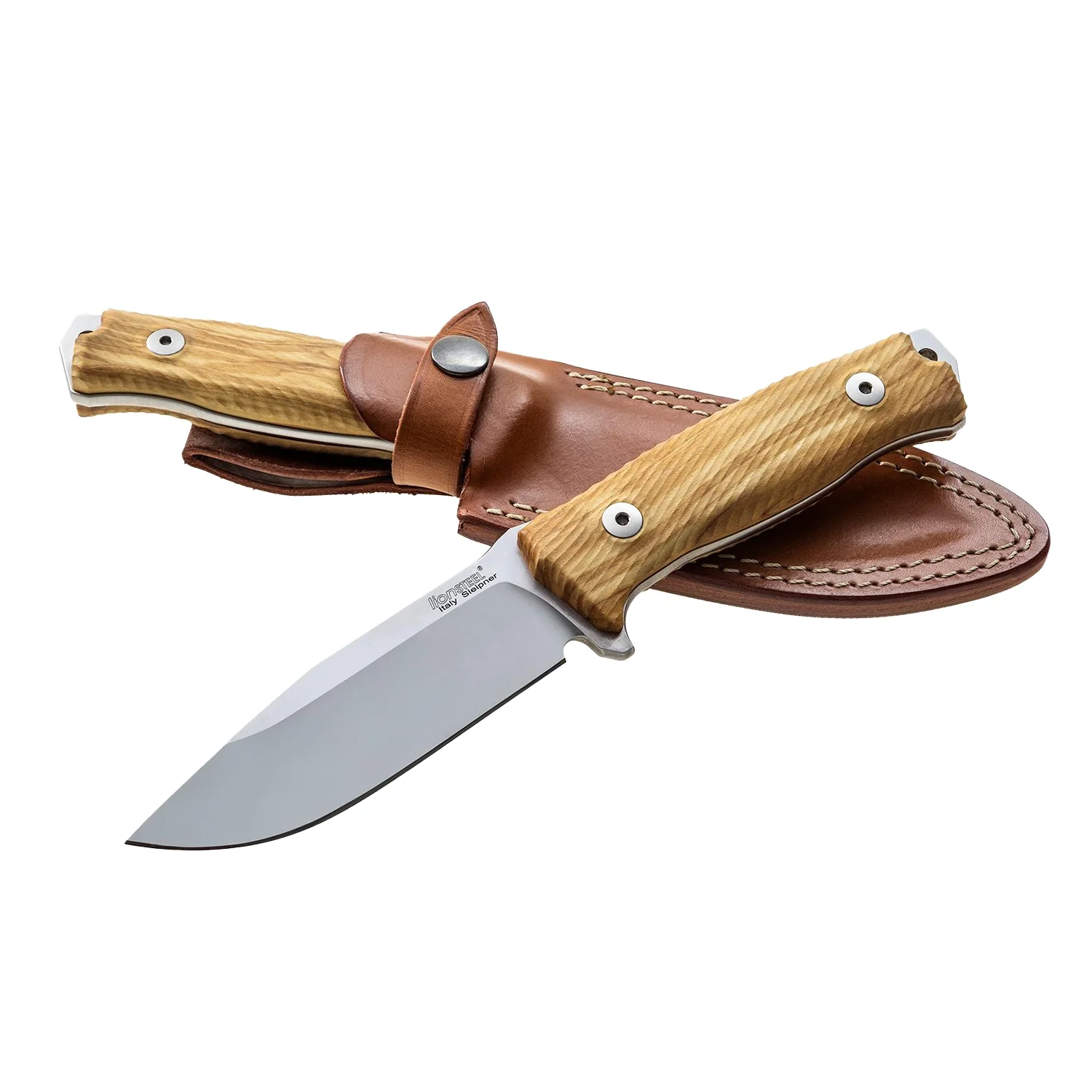 The Perfect Carry | The M5 is a fixed-blade knife, born to be very easy to wear while still being very reliable for every outdoor and camp usage because of its large blade. The M5 is equipped with a Sleipner steel blade, which is available either satin-finished with PVD and stone-washed treatment, and it is manufactured with three different handles: olive wood, Santos wood, and black G10. The handle is fixed with stainless steel Torx T8 screws. The M5 is suitable for a variety of camp usages, cutting branches or processing food for instance. Its average dimensions and reduced weight make this knife an excellent all-around tool that is ideal for every outdoor activity. The M5 is designed by Molletta and it is supplied with a leather sheath for the wooden models, or with a Cordura sheath for the G10 and Canvas models.