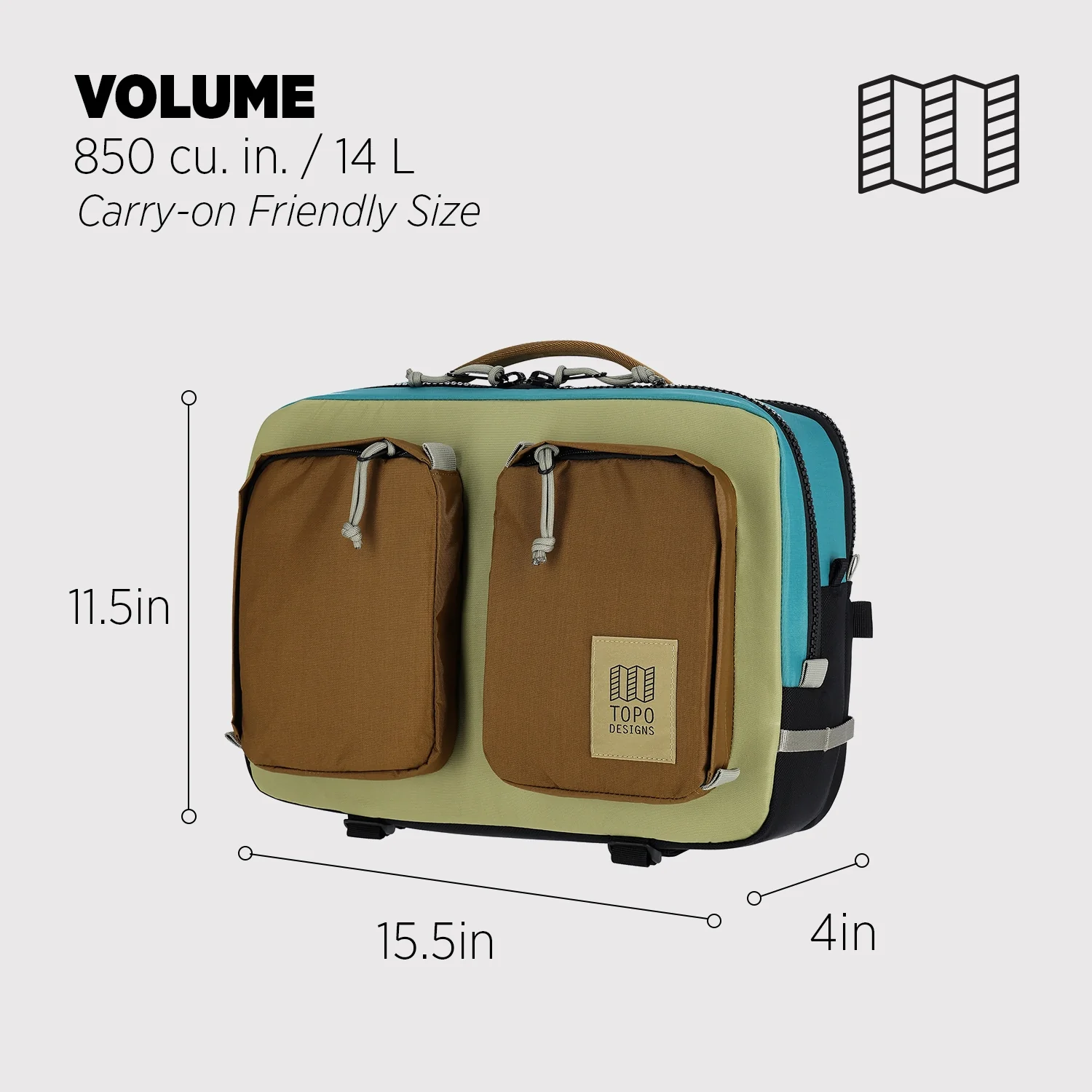 BUILT FOR ANYWHERE TRAVEL|With dimensional exterior pockets and our signature styling, the Global Briefcase is a bold addition to any bag collection. Mountain-ready recycled materials meet travel-friendly features, creating an everyday carry that’s up for anything. Equipped for commuting to the office or breezing through the concourse. The Global Briefcase boasts a large main compartment with added internal organization and an external padded laptop sleeve. Choose from the 3 carrying options, or use the pass-through sleeve to secure the bag to your rolling luggage handle. Two large dimensional pockets on the front are perfect for keeping your essentials accessible no matter where you’re headed.|FEATURES|Three-way carry (Top carry, stowable backpack straps and a removable shoulder strap), zippered padded external laptop compartment fits most 15” laptops, pass-through panel for attachment to rolling luggage handle, u-shape entry to large main compartment, two large dimensional external pockets with mesh slip pocket, removable adjustable padded shoulder strap, bottom compression straps, PackFast™ Travel Bag attachment clips, heavy-duty YKK zippers, and carry-on compliant